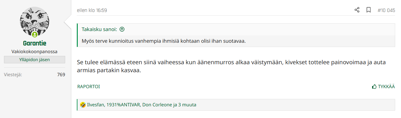 "minä olen mode, minua ei teidän tavallisten kuolevaisten säännöt kosketa"Juu, samaa mieltä. Jos tiukka linja otetaan, niin esim. tällaiset asiaankuulumattomat(lue: offtopic) viestit voi ihan vain poistaa, eikä modeilla ole velvollisuutta siirrellä niitä toisiin ketjuihin.