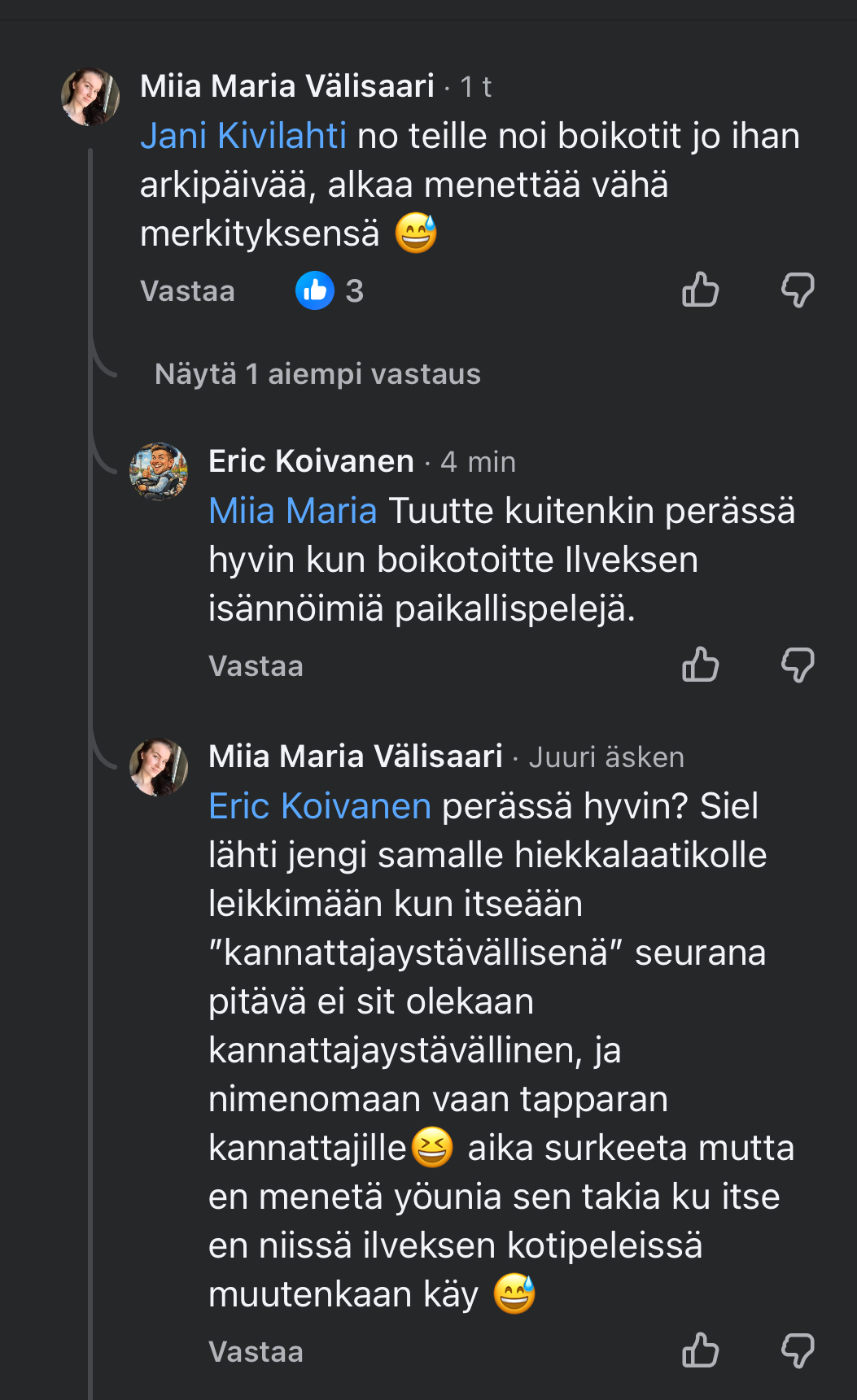 Ihan perus. Itekin, jos haluaisin kiekkokannattajaskenessä vähän trollata naapuria, niin just jakaisin pitkän aikaa somessa natsijuttuja. Harmi, että paisui vahingossa liian isoks, mutta niin voi käydä, kun trollaa pro-tasolla.