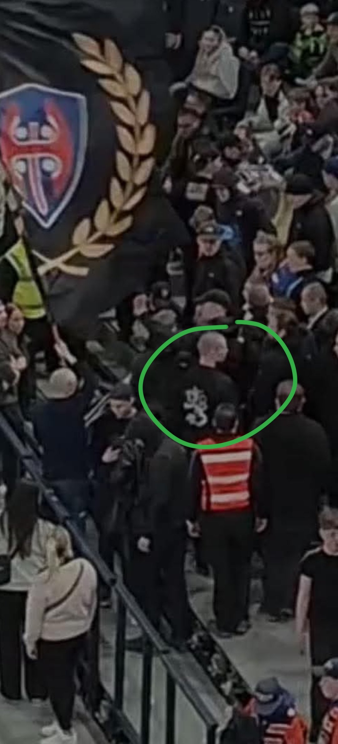 Tässä vielä parempaa kuvaa katsomosta ja ihan tapparan lipun vierestä. Kiinnostaisi kyllä todella paljon tietää koska mouhojen toimisto puuttuu siihen että heidän katsomossaan natseja seisoo. Olisi myös mielenkiintoista kuulla esim. @kirvesrinnassa ja @SiniOranssi_Kolmospaita kommentit näistä sankareista.