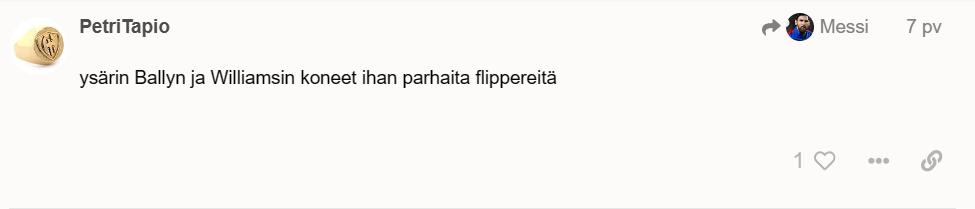 Ne pelaa niitä nykyään. Sillon ne on valtaosa tehty ja on kyllä parhaita. Ei juuri tehdä enää. Käyn joskus Ikurissa pelaan vanhoja flippereitä omien muksujen kanssa. Vanhoja flippereitä ja arcadepelejä on paljon nuoria pelaamassa.
