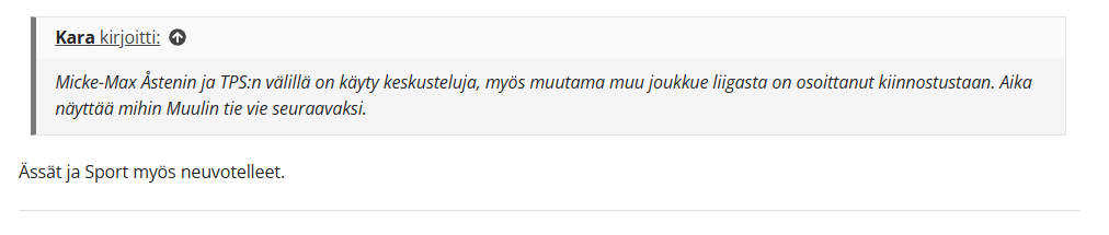 Kenet Ässät julkaisee? En ole ole kuluttanut sekuntiakaan muiden joukkueiden huhuihin.