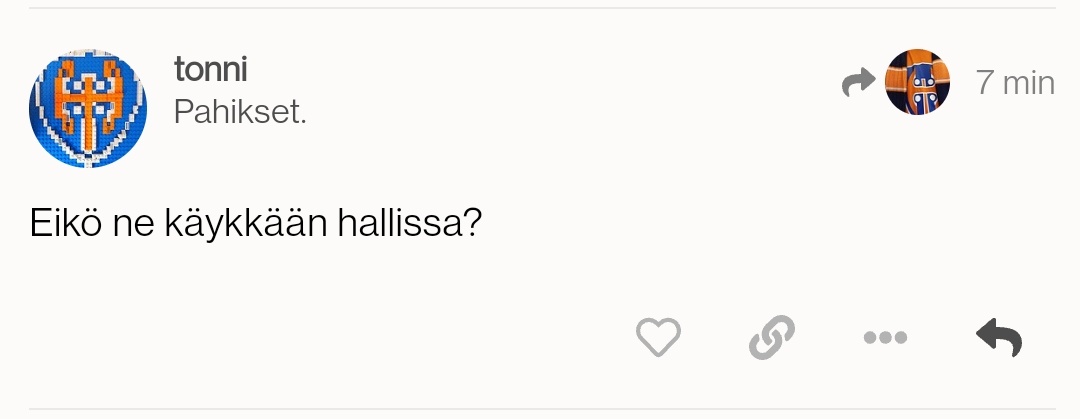 Isojen voittojen jälkeen, kuten eilen ja Hifki-pelin jälkeen, tuonne tappion kärsineiden joukkueiden omiin otteluseurantaketjuihin ilmestynyt aika sisällöttömiä viestejä. Jatkoajasta täytyy muistaa, että siellä on eri joukkueiden kannattajia, jotka katsovat oman joukkueen näkökulmasta näitä juttuja. Siksi yleensä vika tappioihin löytyy aina omasta joukkueesta ja harvemmin vastustajan hyvyydestä, niin siellä muutama Ilvesläinen näyttää käyvän muistuttamassa, että "eikös oltukin mekin kuitenkin hyviä" -tyyliin näille. Tappio niskassa ei ymmärrettävästi huvita vastustajaa suitsuttaa liiemmin, varsinkin jos sävy on yhtään "lällättelevä".