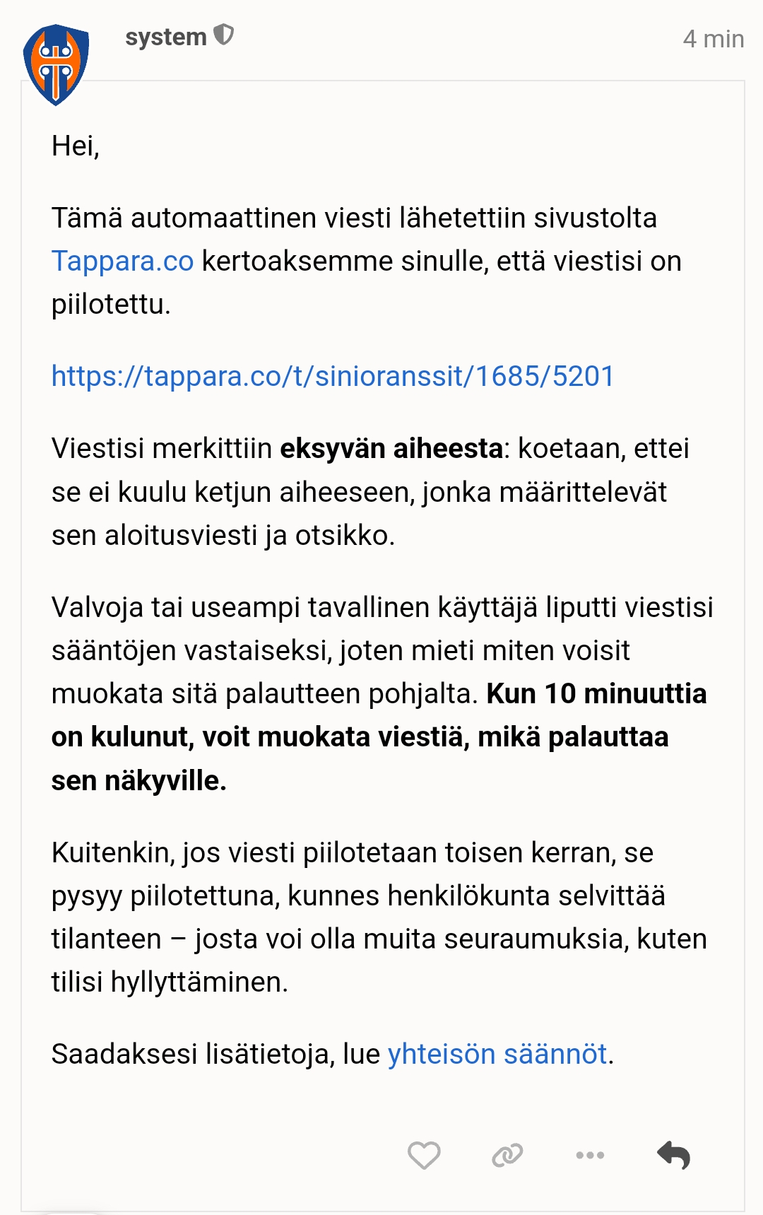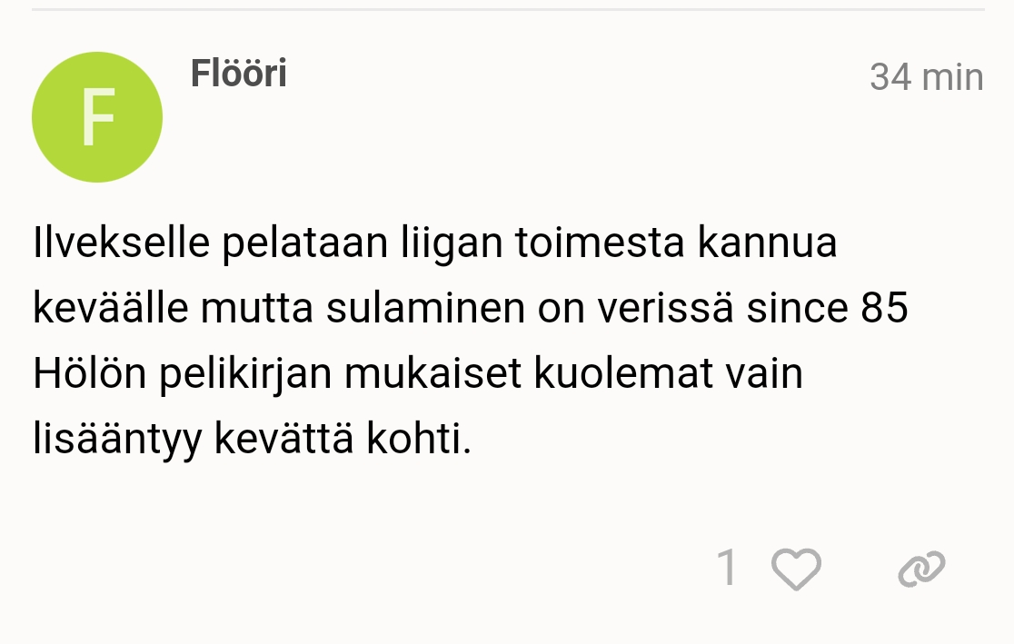 No siinähän meni sitten ihan oikeesti alle kaksi minuuttia kun viesti oli piilossa jonkun vitun liputuksen takia.