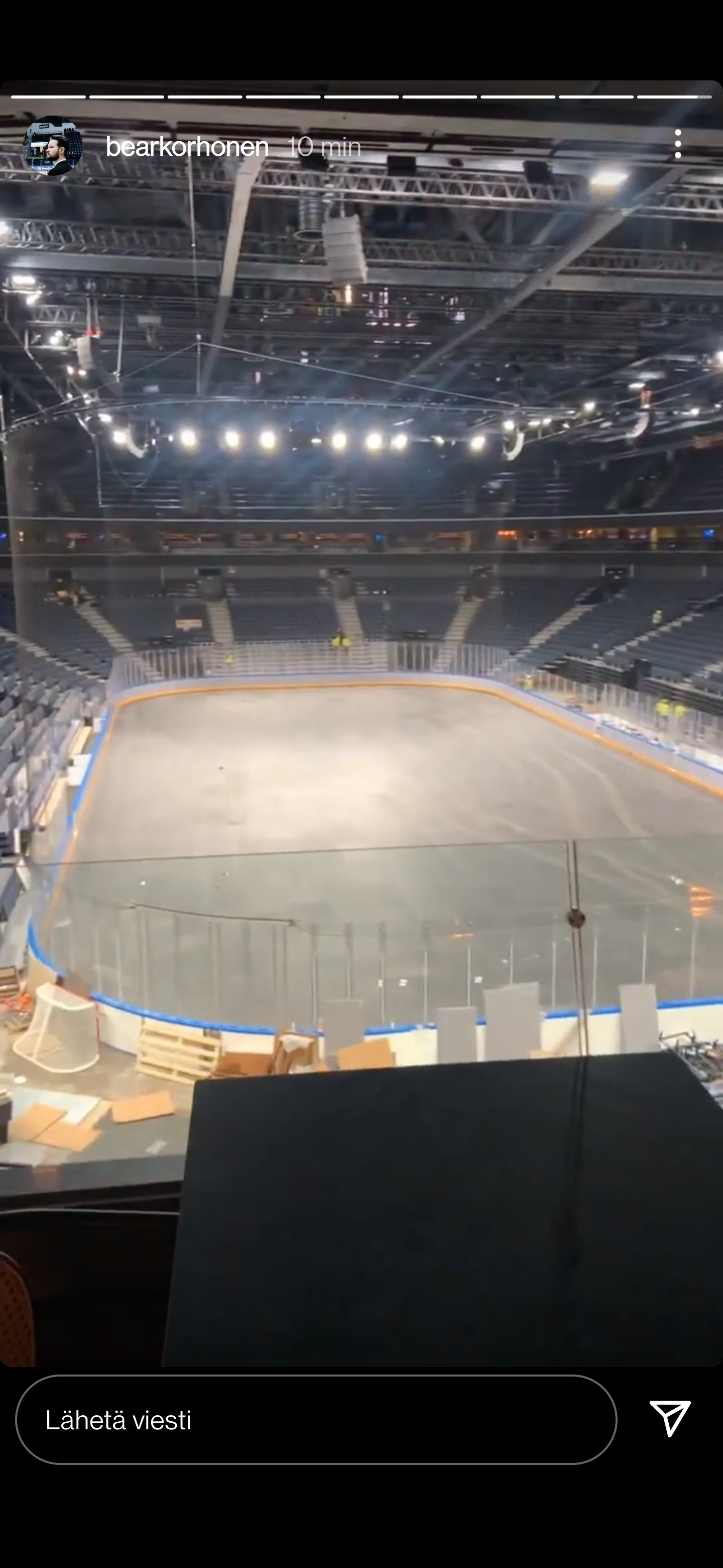 Pakko sen on olla nostettu ylös, kuutio oli valmis ennen kaukaloa. Eiköhän tuohon ole jään päälle laitettu ne levyt mitkä siihen tulee aina kun on joku muu tapahtuma kuin lätkäpeli
