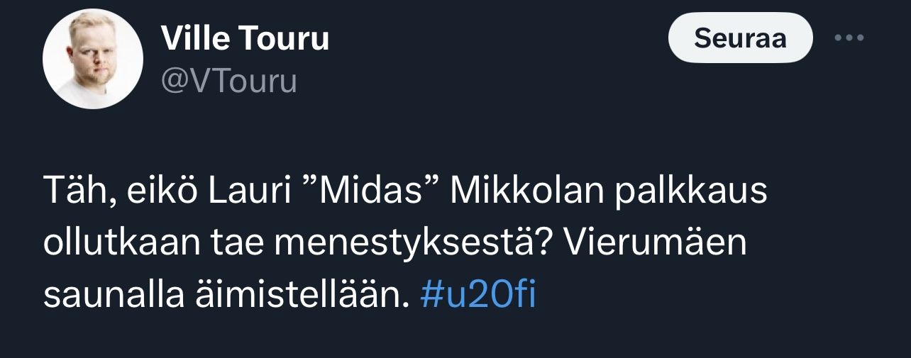 Sihvonen nyt ensinnäkin vetää ihan performanssina tuota, mutta toisekseen ei hänen kohdallaan edes homma mene noin. Esimerkiksi 2021-22 kaudellahan Ilves ja Jukurit olivat Sihvosen mielestä koko kauden erittäin huonoja, vaikka painelivat kärkisijoilla, koska pelasivat Sihvosen mielestä ”väärin”.Nämä tämmöiset Tourut ja muut ovat kyllä huvittavia.