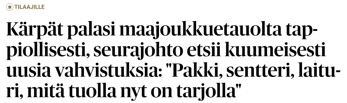 – Se oli villiä touhua, kun Toikka rustasi sopimuksia. Moni pelaaja meni neuvotteluihin mielessään jokin summa, mutta ”putkimies” saattoikin heti ilmoittaa summan, joka oli jopa tuplasti suurempi. Itsellenikin kävi niin. Heitin nopeasti vastakommentiksi, että voidaan tehdä samalla kahden vuoden sopimus, Järvenpää sanoo hymyillen.