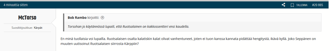 Johan sinä itse laitoit kuvankaappauksen jossa Torso itse huhuaa Area Kärppiin ensi kaudeksi :D