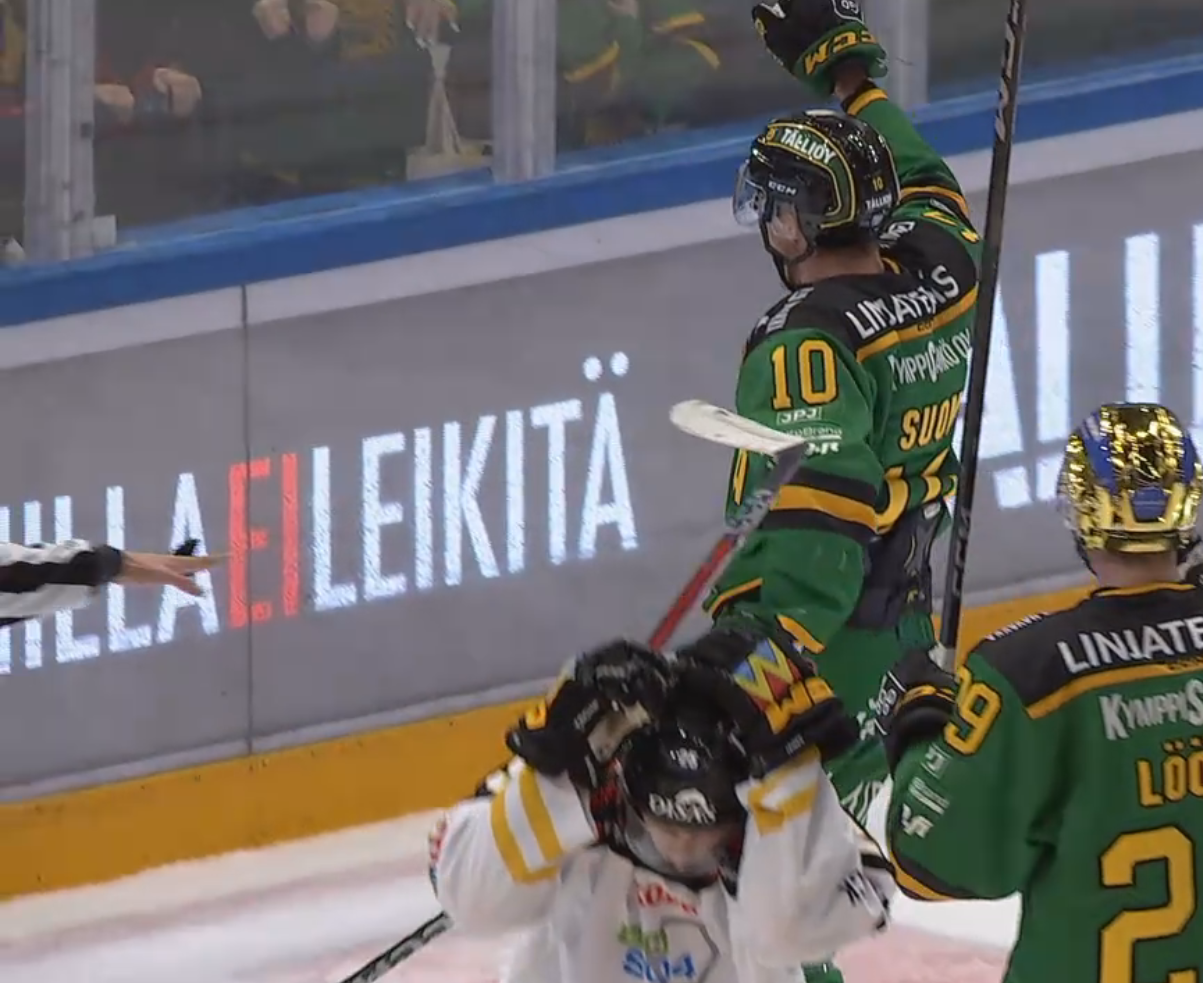 Ei Supi tuulettais noin, jos ei ois tuntenu osumaa kiekkoon. Videota kelaamalla näyttää et osuu joko Supin mailaan tai Kärppäpelaajan käteen. Tuomarit näki näköjää, ettei ainakaan Supin mailaan ja hyväksyi. Hyvä meille. Supi varmasti tietää itse, mutta siksi piste Simmelle ja sillä eteenpäin.