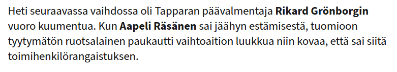Nyt on kyllä naapurifoorumilla joku kieltämisvaihe menossa. Onhan siellä paljon niitäkin, jotka näkivät, mitä tänään oikeasti tapahtui, mutta aivan älytön määrä myös kirjoittajia, joiden mielestä Tappara oli tänään hyvä ja ottelu oli tasainen. Siitä mitä helvettiä? Maaliodottama 0,9 vs. 3,0, ja tuo 0,9 taitaa olla kaikista Liiga-joukkueista tällä kaudella toiseksi pienin yksittäisessä ottelussa. Jokainen jääkiekosta jotain ymmärtävä näki, ettei Tapparan pelissä ollut tänään mitään tolkkua. Roiskimista vailla minkäänlaista toimivaa hyökkäyspeliä. Pelin jälkeen herrat Vallin ja Kivi kertovat nämä asiat studiossa ja tylyttävät Tapparan pelin aivan olemattomaksi, mutta kannattajista osalle kelpasi. Selvä sitten.
