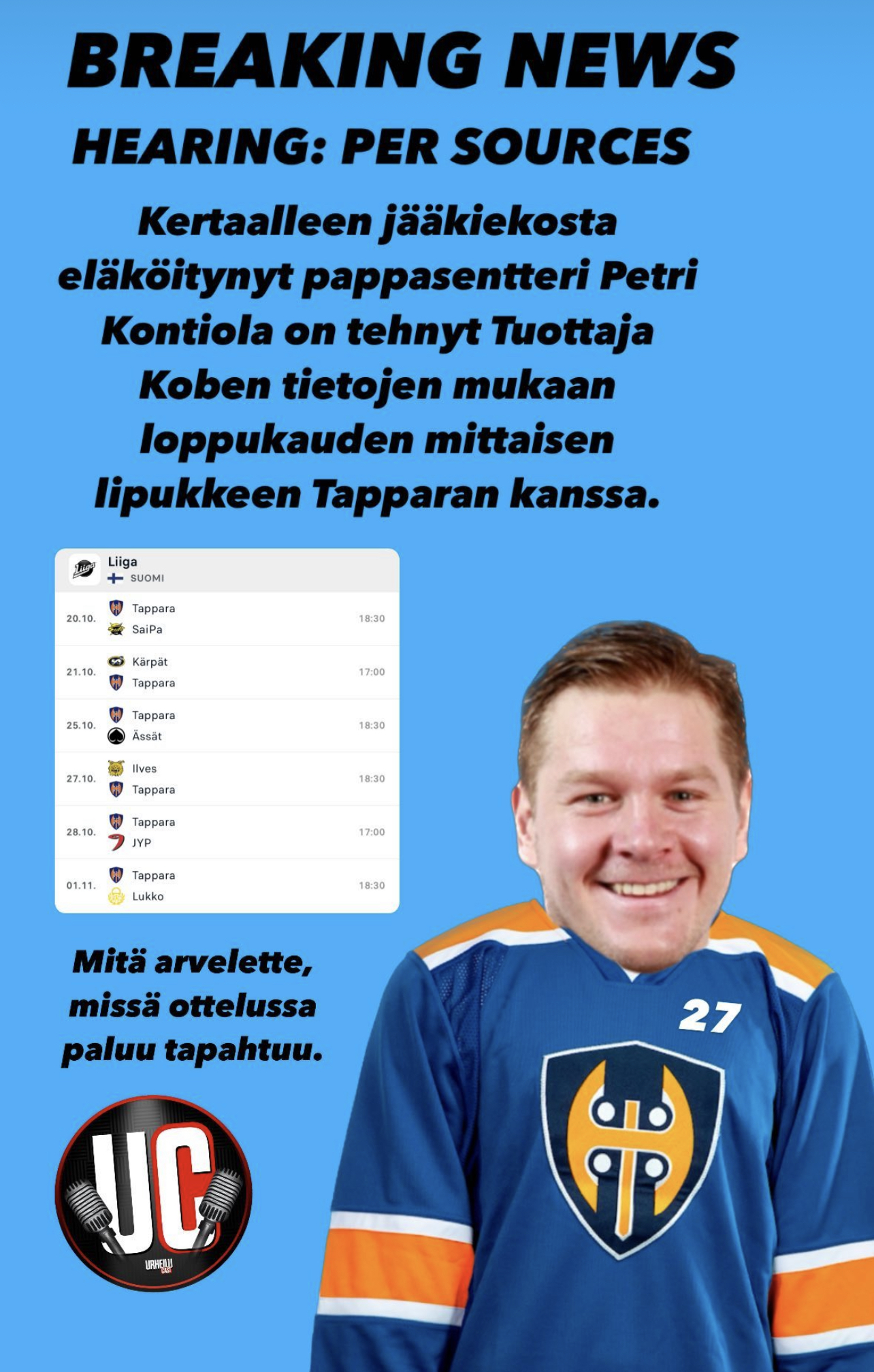 Olen kanssasi täsmälleen samaa mieltä, mutta se, että jotkut haikailevat Konnaa Ilvekseen on mun mielestä vaan, että näkevät asian eri lailla, muistavat hyvät asiat mitä Konna toi, pisteet, kevään -22 seiskapelin jne. Eivät laske mainitsemasi urheilullisuuden yms varaan. Itse ajattelen, että vaikutus olisi myös voimakkaan negatiivinen ryhmädynamiikkaan, kun muut ovat painaneet hullun lailla treeniä (eivätkä törpötelleet viime kaudella) ja sitten tuotaisiin kaveri ohituskaistaa suoraan golfkentiltä.