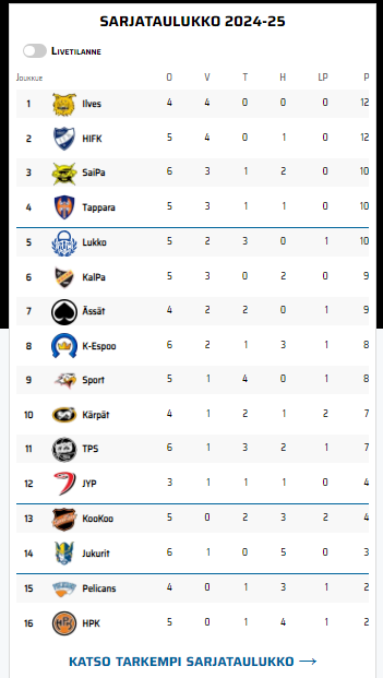 Hölö aamupalalla katsomassa sarjataulukkoa:Jaahans, näyttää aivan siltä, että Ilves on sarjassa... ykkösenä.