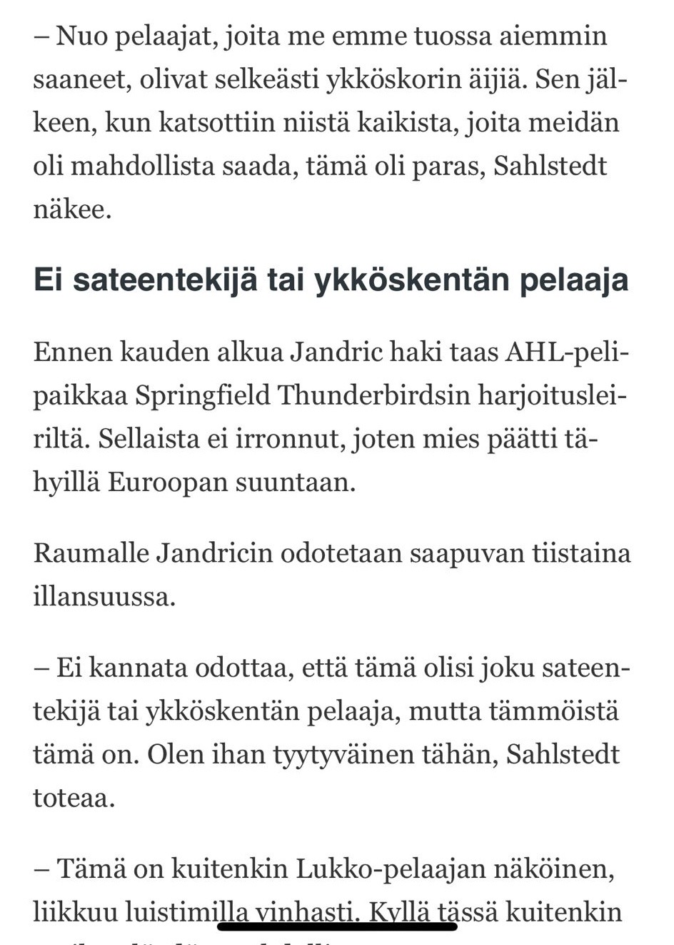 "Koko syksyn puolustajaa etsineelle Sahlstedtille ei aiemmin kelvannut Ilvekseen päätynyt Dominik Masin eikä Ässiin tullut Shawn Lalonde"
