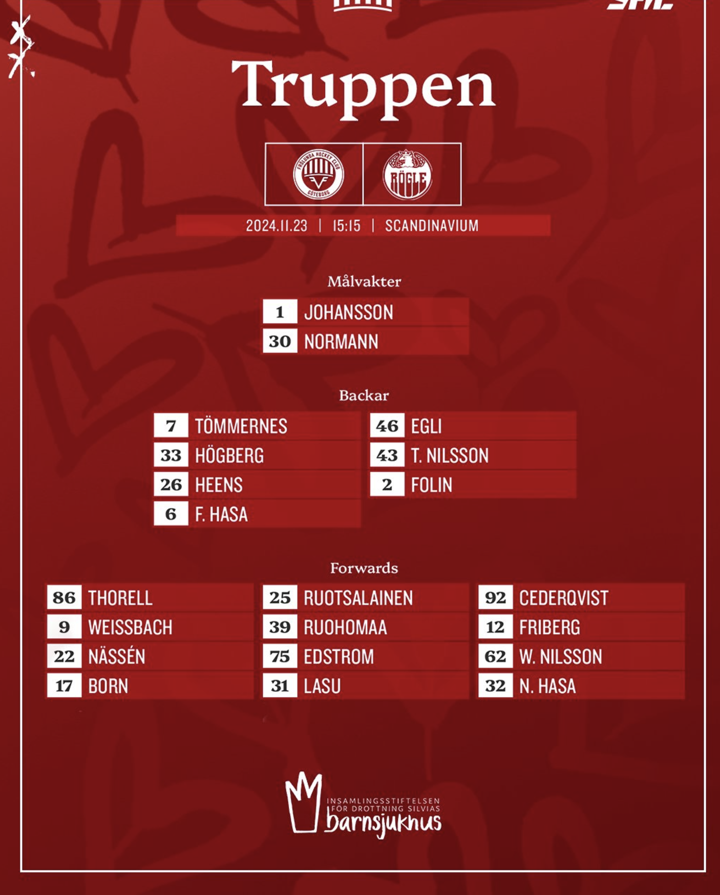 Kaiken lisäksi SHL:ssa saa merkata kokoonpanoon yhden pelaajan lisää. Viimeksi olivat ilmoittaneet 7 pakkia ja 13 hyökkääjää - nyt vain 7 pakkia ja 12 hyökkääjää!Carl ei ole tänään pelaavassa kokoonpanossa.