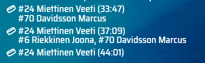 - aktiivinen laukoja, peliaikaan suhteutettuna 18.1.2025 alkaen 9. aktiivisin vetäjä vähintään 10 ottelua pelanneista. Tämän kauden KooKoossa kuti lähtee jopa Meseä tiheämmin