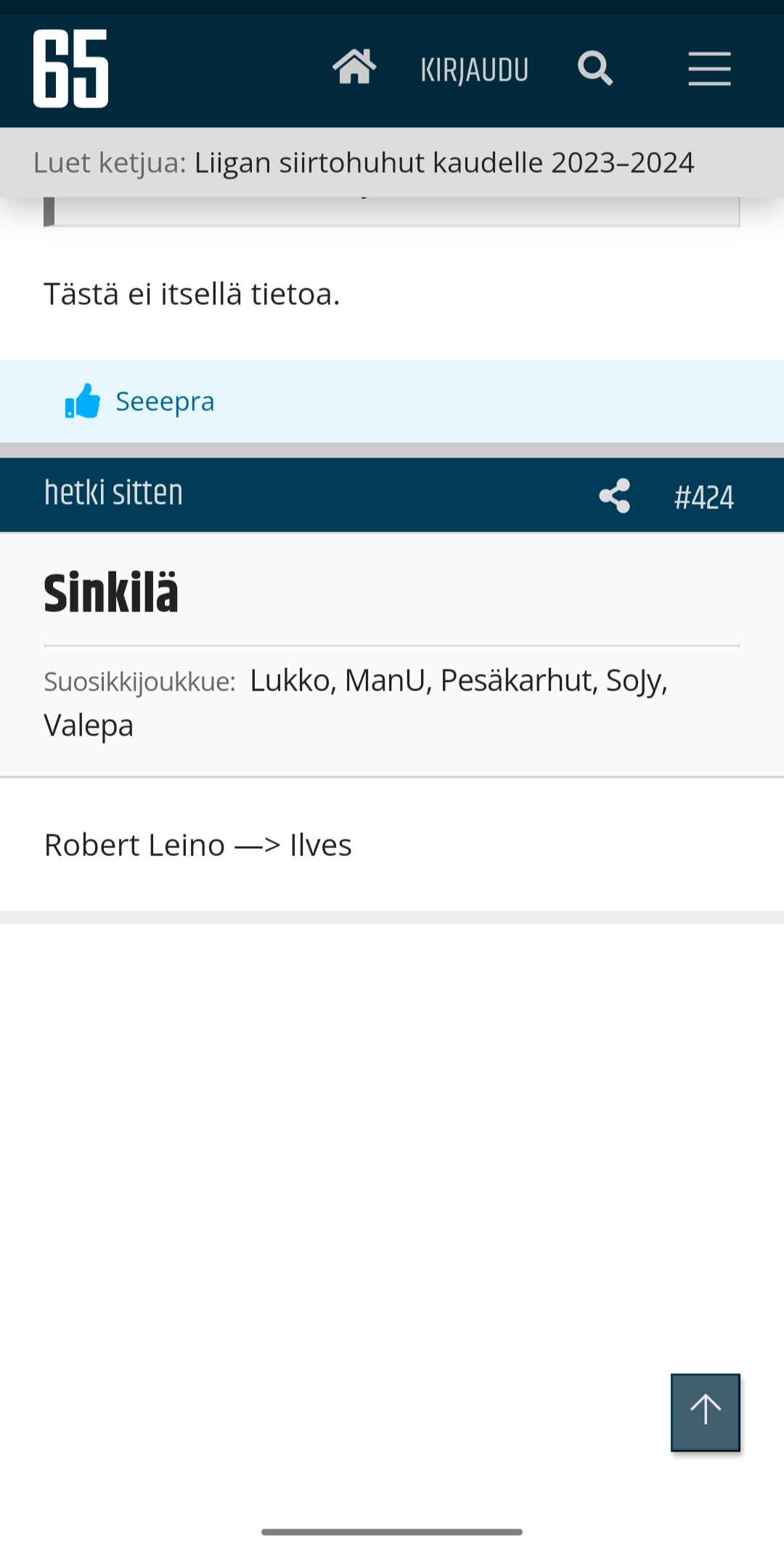Sama tyyppi joka kirjoitti jatkoajassa eilen, että Pelli tulisi Ilvekseen ensi kaudeksi kirjoittaa nyt, että myös Robert Leino olisi tulossa.