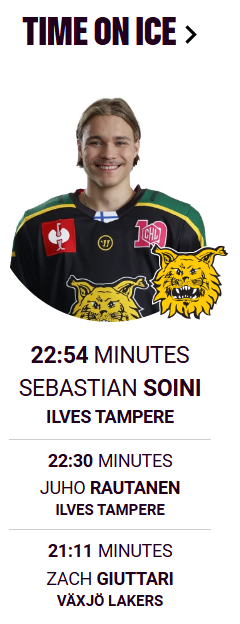 Tänään CHL-ottelun peliaikakuningas: kevyet n. 23min nuorukaiselle.