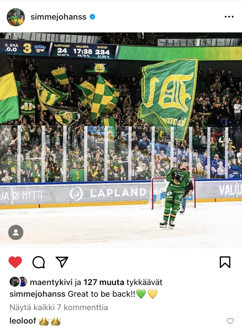 Vaikka täälläkin paljon kirjoiteltiin,että ei tänne ensisjaisesti pakkeja tarvita lisää, ja samaa mieltä itsekkin olin. Näin jälkikäteen ajatellen luojan kiitos, että saatiin Simme tillbaka. Näin voi asioita tapahtua, kun on kungen Tillu (vai mitä Ipa1970). On kyllä koko Ilves yhteisölle valtava juttu. Ja eiköhän koppikin ottanut ukon ilolla vastaan, vaikka siellä pakit saa olla peliajastaan entistä enemmän huolissaan..