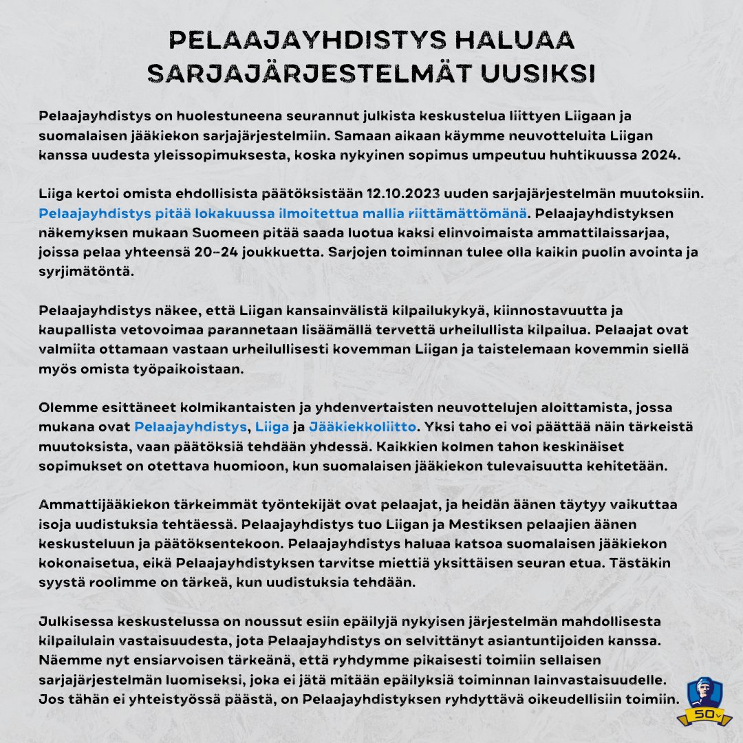 – Sen takia on yhtiökokouksen päätös, jossa putoava seura tai liigapaikasta muuten luopuva seura, paitsi konkurssimerkitty seura, saa vastaavan summan, mikä merkintähinta on sillä hetkellä, kun se luopuminen tai sarjasta tippuminen varmistuu.