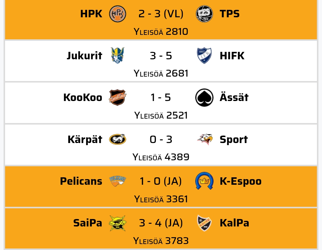 SaiPa tietenkin ja ehkä ja siis iso EHKÄ Kärpät. Surullisia on lukemat.