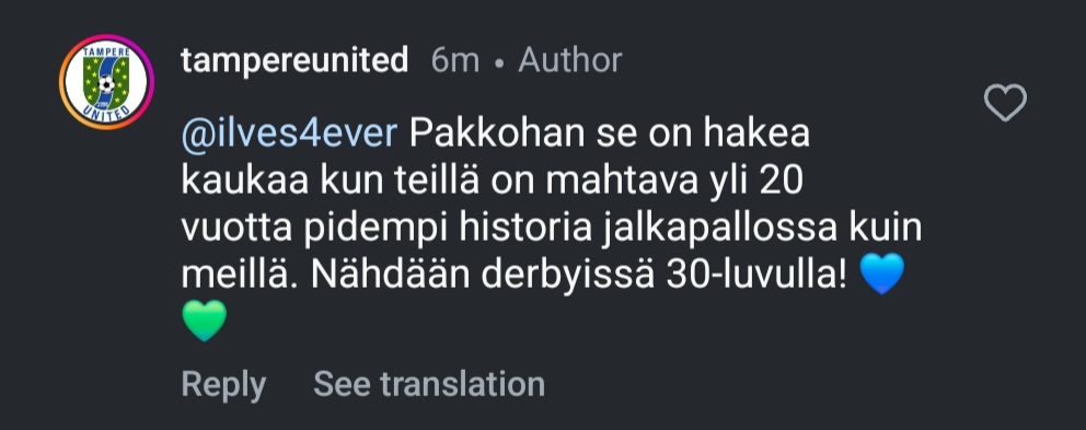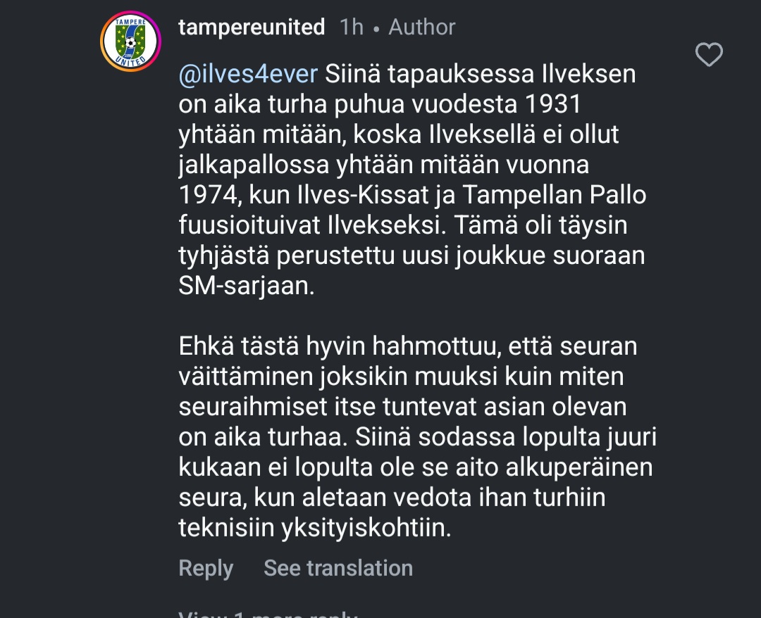 Riitely jatkuu! Adminillä pakkomielle saada kunnon näpäytys yksittäiselle kannattajalleHuutista sille, että seuran oma ig riitelee jonkun Ilves-kannattajan kanssa kommenteissa![]()