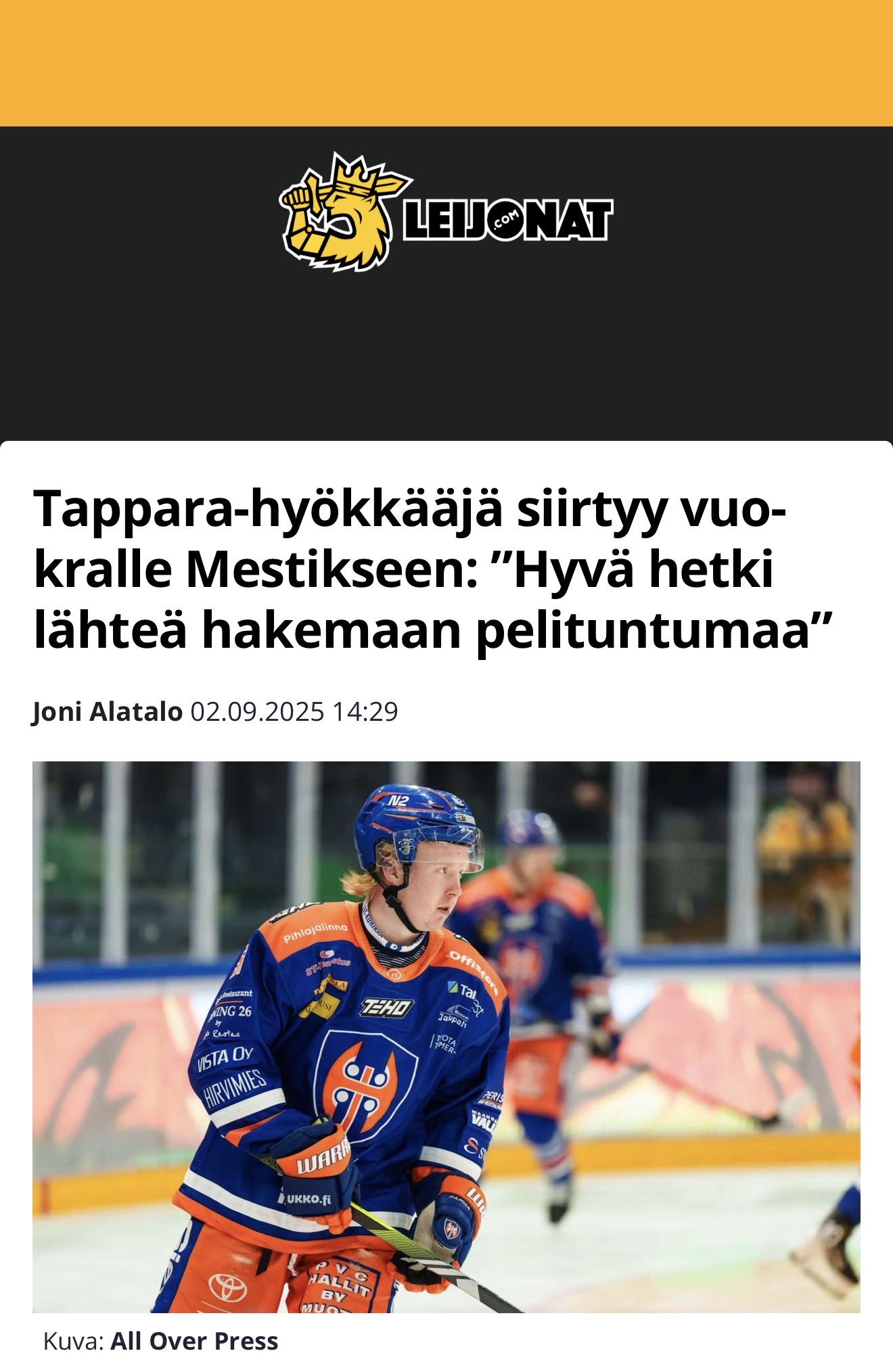 Mikäköhän on Emilin seuraava osote, jos ei Liigassa sitten kuitenkaan Tapparastakaan peliaikaa irtoa. Vaasan Sport? Kookoo? Vai peräti Ässät?