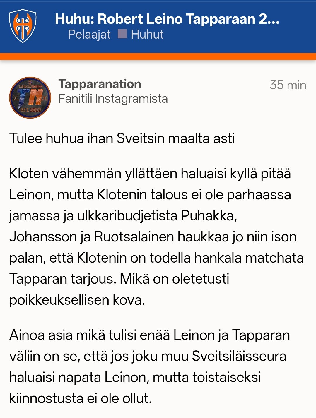 Sen enempää kaverin huhujen osuuvudesta tietämättä pakko kysyä että kuinka saatanan syvät ne mouhojen taskut on jos ensin maksetaan plitsveltille se 300-400k ja nyt ei sveitsiläisetkään enää pärjää tarjouskilpailuissa?:D