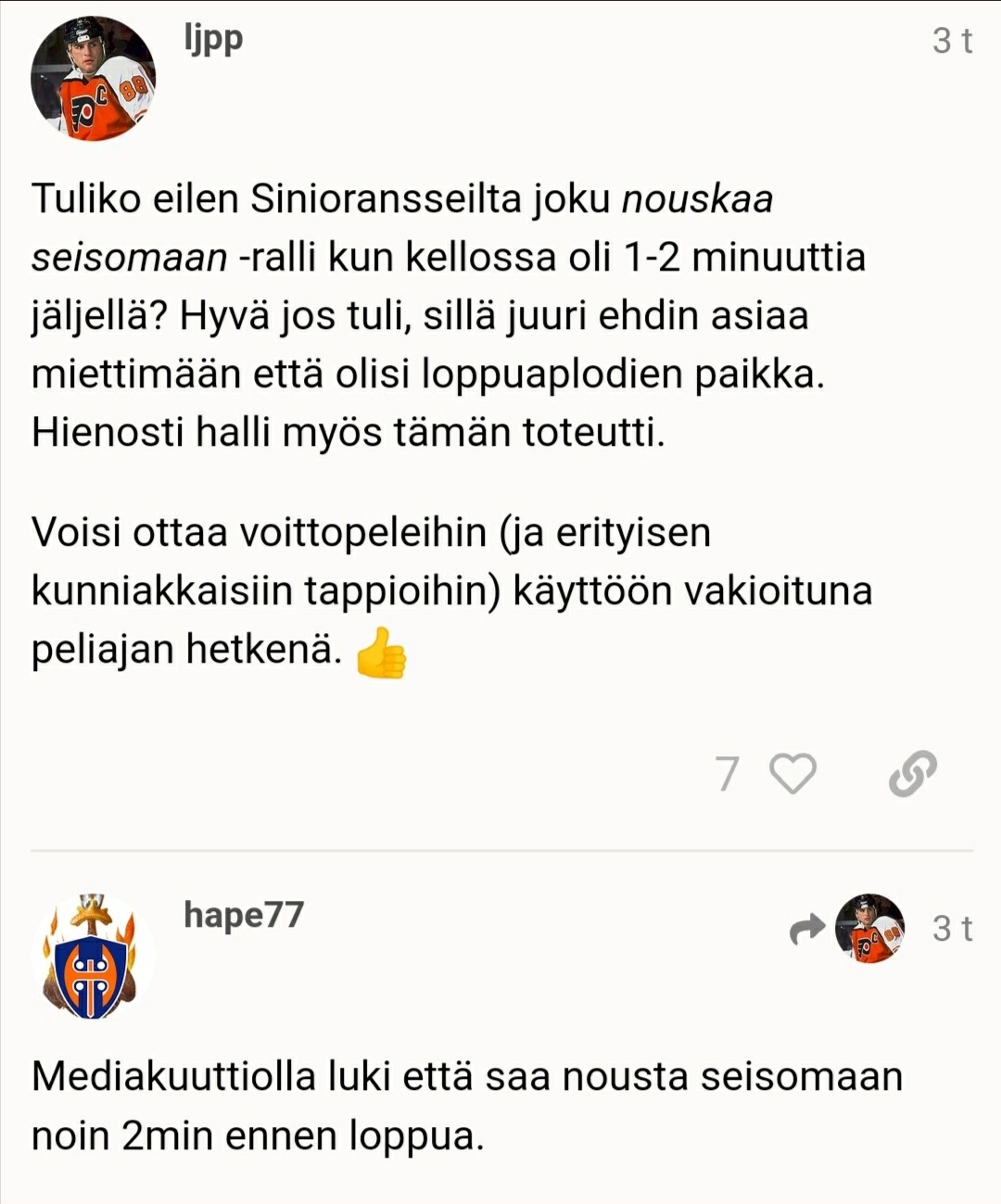 Kyllä täälä yleisesti tunnistetaan Tapparan vahva tekeminen, eikä sitä pysty kukaan kieltämään. Kyllä näihin asioihin sen verran objektiivisesti pitää pystyä suhtautumaan kun isoa kuvaa katsotaan.
