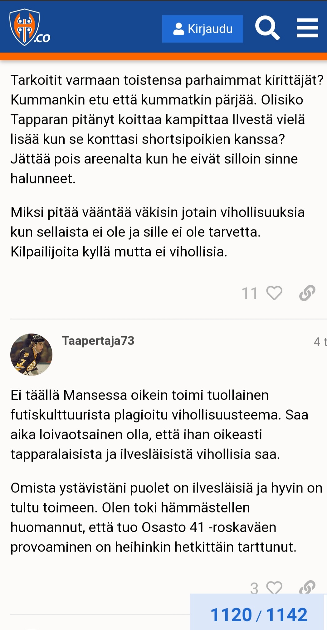 Minua edelleenkin ihmetyttää, että jotkut Ilveskannattajatkin kehuvat, kuinka hieno ja hyvä palsta tuo tappara.co on.