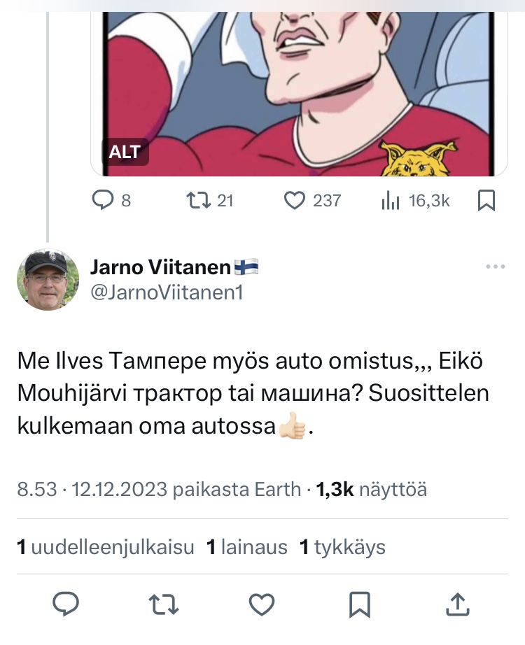Tappara on kyllä kunnostautunut kovasti kuittailemaan viime aikoina somen puolella. Nyt, kun kerran voittivat, niin pientä piikkiä lähtee kokoajan. Ilves on kyllä kuittaillut jättänyt ihan minimiin tänä vuonna (lukuunottamatta Pelicansin videoon heitettyä asiallista kommenttia). Tämäkin taisi olla ihan tietoinen valinta, kun muistaakseni Tuomisto on tälläistä sanonut jossain haastattelussa.