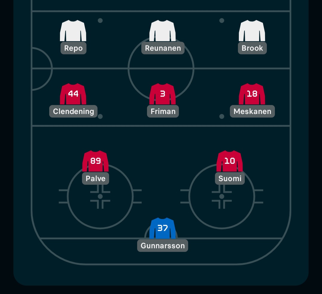 Meseä olisi toivonut kyllä että olisi huilannut tänään (Päkkilä sisään ja vaikka Könönen ykköseen). Muuten ihan hyvältä näyttää.