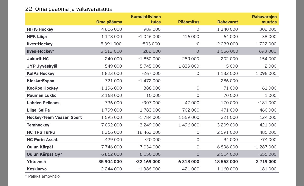 No on tuossa jonkinmoinen ero jos ei lasketa koko konsernia, niin Tapparalla kassassa löysää 3,2 milliä ja Ipalla reilu milli, edellisissä tiedoissa jokunen satku. Tuskin kuitenkaan futispuolen rahoja on tarkoitus kupata. Ja vaikka laskettaisiin koko konsernin rahat mukaan, niin silti milli eroa + Tapparan taustalla astetta leveämpiä hartioita mitä tulee raha-asioihin. Ja edelleenkin Ilveksen kumulatiivinen tulos miinuksella. 2023 julkaistuissa tiedoissa edellisten tilikausien yhteenlaskettu tulos oli vielä 3,7 miljoonaa miinuksella.
