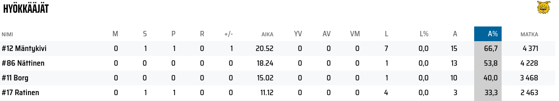 Mielenkiintoisin huomio itselle oli Najmanin puuttuminen ja Ratisen peluuttaminen sentterinä. Jos Merikivi sanoi, että Ratista peluutetaan tarkoituksella sentterinä, niin miksi hän aloitti vain kolme kertaa? Ei ainakaan kuulosta pysyvältä ratkaisulta.