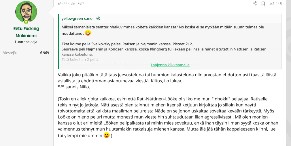 Kyllähän sieltä joku vastine on ilmestynyt.Loistava kirjoitus arvon palstaveljeltä/siskolta.