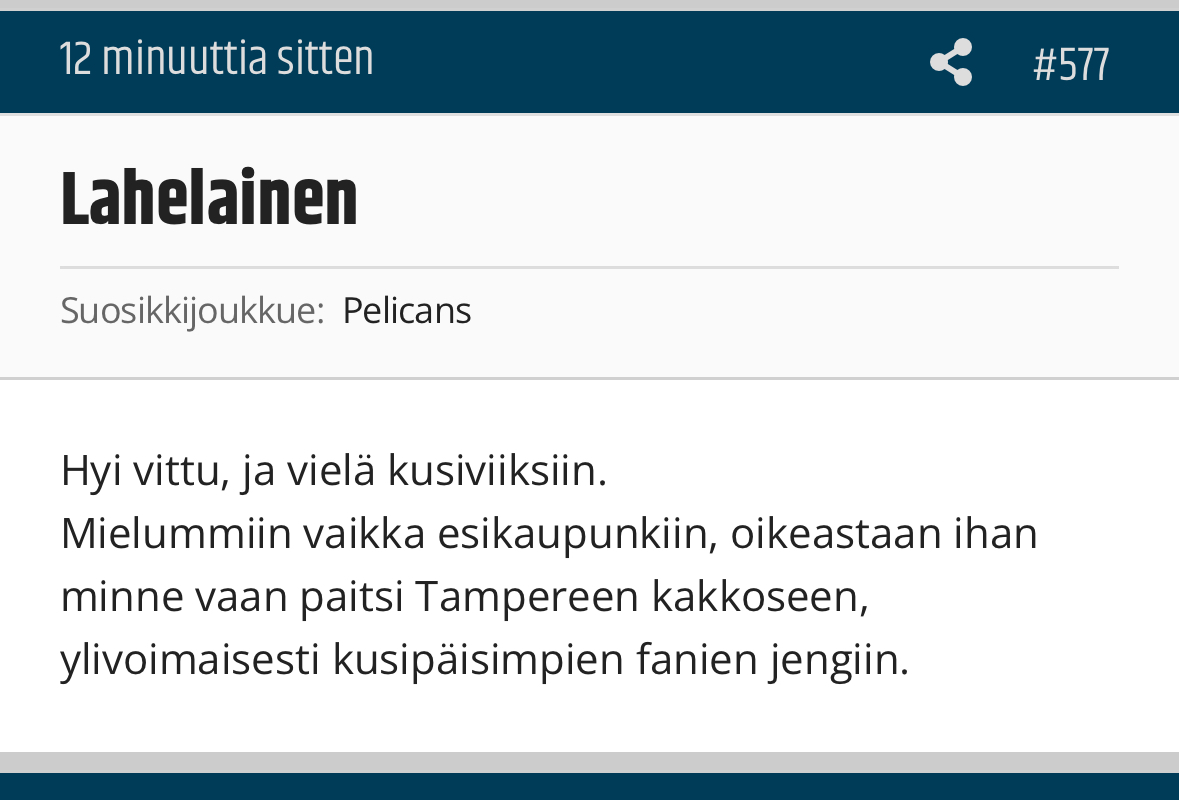 Oli näköjään ilmiselvä valinta. Niin kuin syksyllä sanoin, kun jotkut täälläkin ihmettelivät, että miksi menisi Pelicansista Ilvekseen, että nyt vain on sellainen tilanne, että Ilves on Pelicansista yksi askel ylöspäin, vaikka samaa sarjaa pelaavat ja vaikka Pelicans sijoittui Ilveksen edelle viime kaudella. Jos siirryt Pelicansista Ilvekseen, siirryt urallasi eteenpäin.