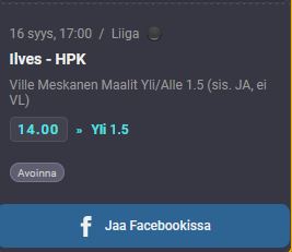 Tulosveikkaus ja otteluseuranta Ilves - HPK 16.9.2023