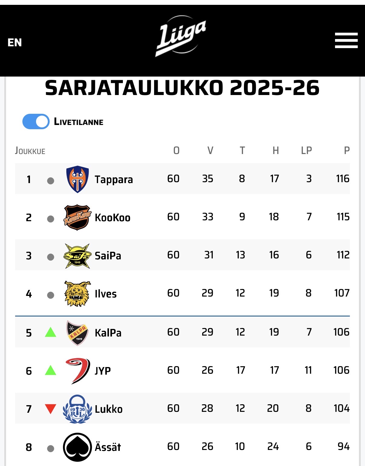 Ja kai KalPan tarttee ensin säälipelit hoitaa vai joko ne on pelattu. Mulla menny vissiin ohi.Mulle sopii varsin hyvin Kalpa! Traumoista on päästävä yli ja nyt siihen tarjotaan taas turvallinen vaihtoehto, meinaan tällä ettei ole mikään finaali..