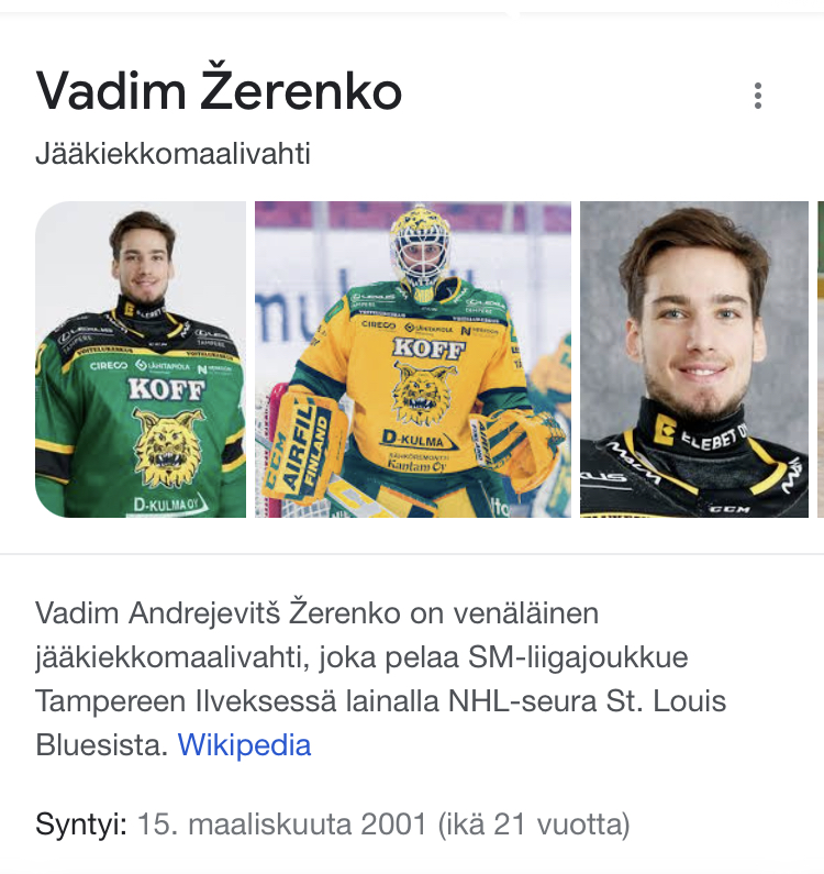 Jos nyt Vadim kutsuttaisiin takaisin niin sitten pitäisi pystyä myöskin takaamaan peliaikaa ja kehittymisen mahdollisuuksia. Mitä ihmettä tehtäisiin tilanteessa, jossa meillä on NHL-sopimus taskussaan oleva kolmosvahti kun Langhamer ja Malek on peluutuksessa edellä? Ymmärrän pointtisi mutta ei nyt ketään pidä takaisin Eurooppaan kutsua vain siksi että niin voi tehdä.