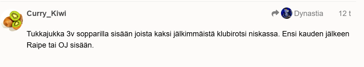Tossa ne unohtaa sen, että Raipe on vanhan (hyvän) liiton mies. Sieltä löytyy periaatteita. Ei varmasti mene Tapparaan ikinä.Tapparalaiset ei saa enää tyydytystä siitä, että tuodaan vanhoja Ilvespelaajia ja Ilveksen kasvatteja sisään vaan pitää saada se kaikkien aikojen isoin Ilves eli Raimo penkin taakse. Vaan sen jälkeen saadaan tapparalaisten nälkä Ilveksen peesailusta tyydytettyä.