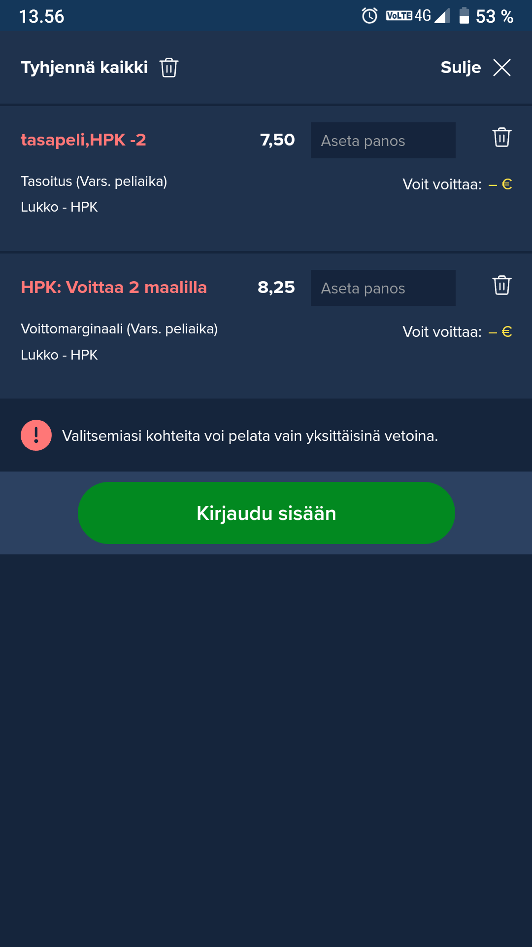 Voiko missään sivustolla lyödä vetoa Suomen mestarista?