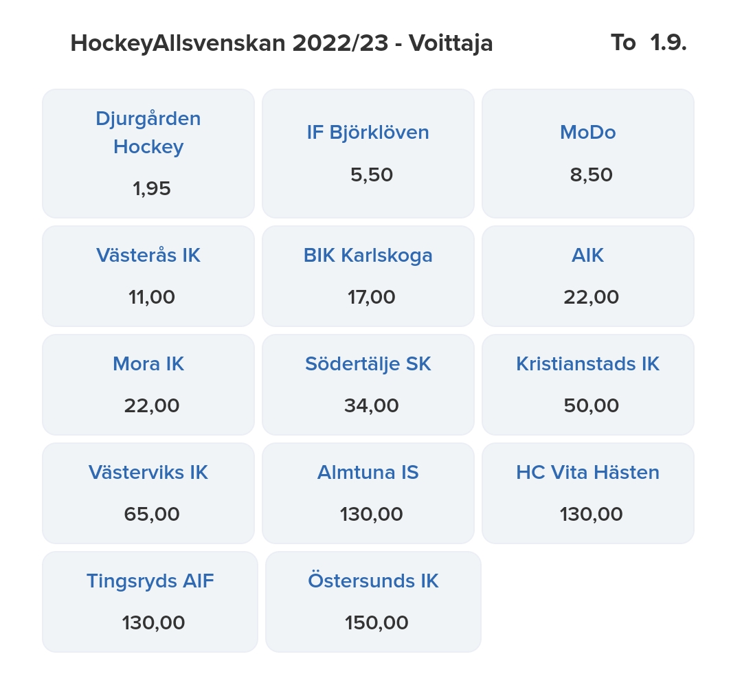 TPS edelleen pienemmässä kertoimessa kuin Ilves, eikä esim. Jokipakan ja Haapalan sopimuksilla ollut mitään vaikutusta Ilveksen kertoimeen. Paljon härskimpiäkin vitsejä kertoimista löytyy, kuten Pelicans vs. Jyp, joka esim. Veikkauksella 17 vs. 50. Hah.