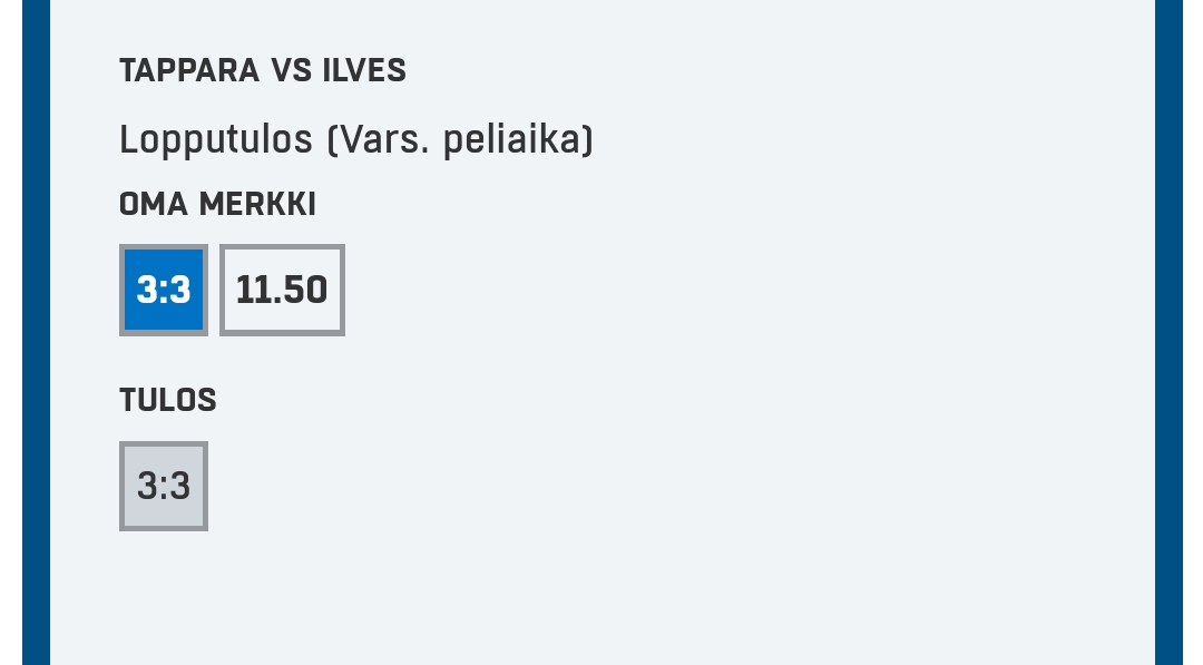 Tapparalle pelattu 1100e ja Ilvekselle 28e Coolbetilla.