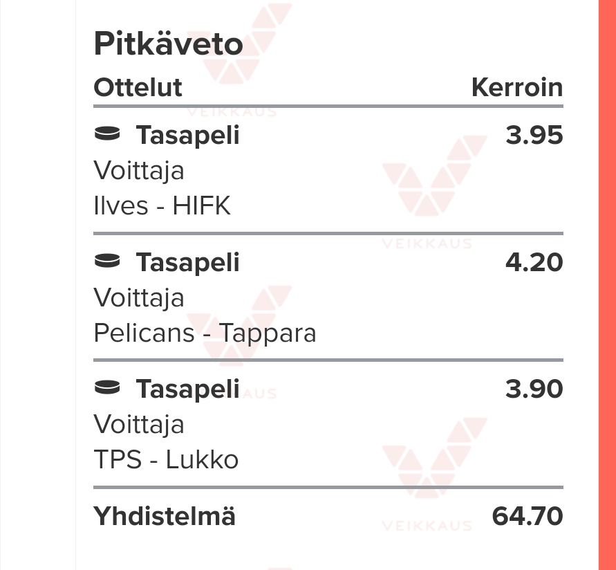 Jälkimmäistä osaa en ymmärrä. Kolme tuntiahan on hirveän pitkä aika. Peliä voi syystä tai toisesta alkaa tulla milloin tahansa johonkin valintaan ja kun sitä reippaasti tulee, niin kertoimet muuttuvat.Niin siis mää meinasin vaan sitä, että varmaan joidenkin pelaamiseen on vaikuttanut Ilveksen maalivahti, mutta tuskin isojen massojen.