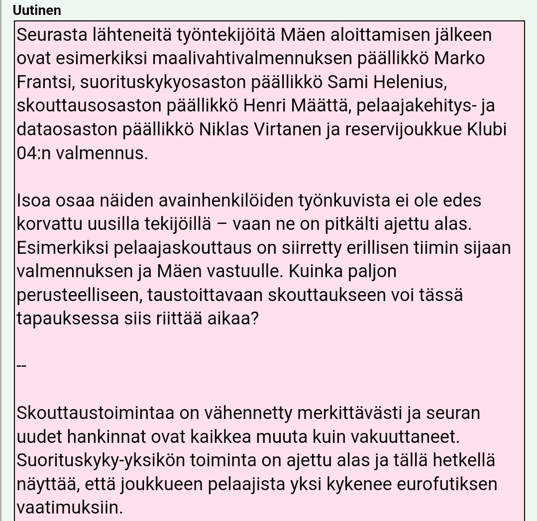 Geneerinen Suomen Superliigakin kuulostaa paremmalta, kuin mikään Veikkaukseen liittyvä. Se olisi minusta iso askel oikeaan suuntaan. Toinen olisi vaatia jokaiselta seuralta lehdistötilaisuudet jokaisen pelin jälkeen.
