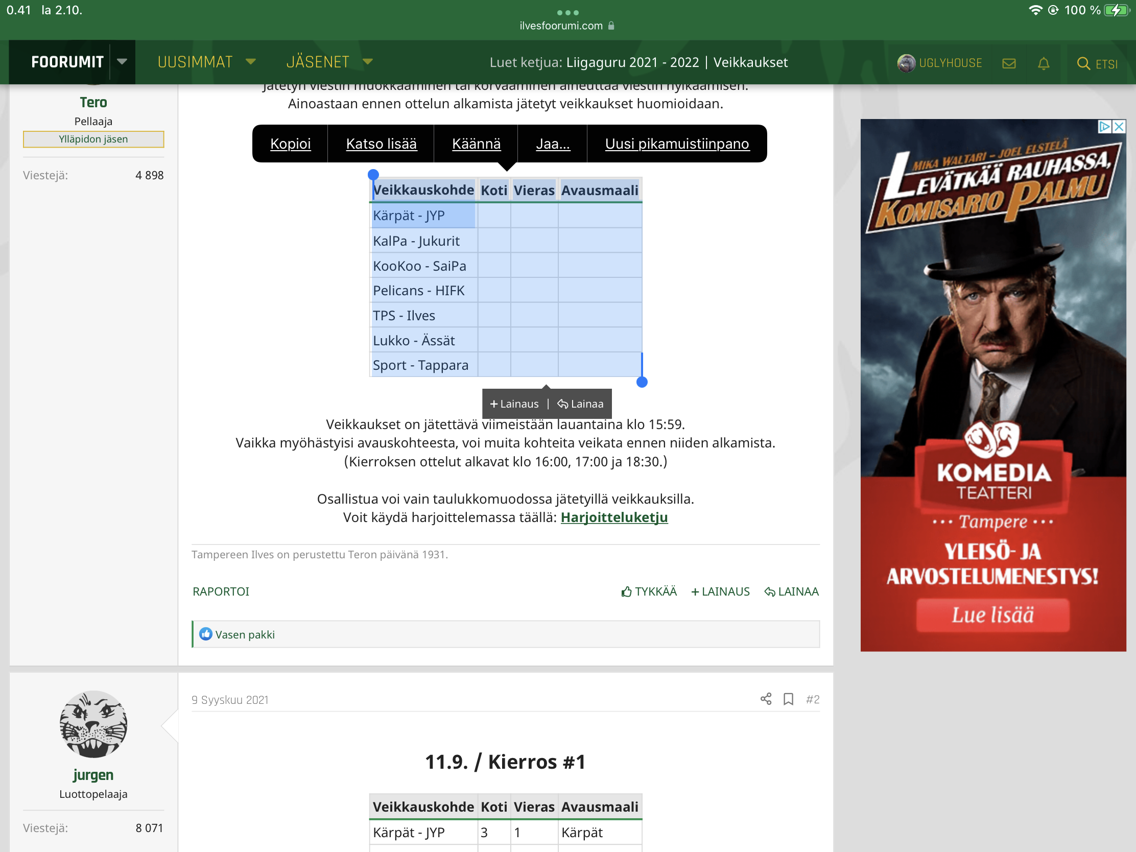 No sehän oli helposti ratkaistuKlikkaa ketjua avatessa sen otsikkoa, älä sitä nuolta siinä oikeassa reunassaJa hyvin toimii hymiöt kännykälläkin!