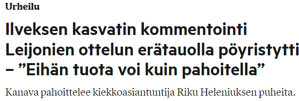 Normaali uutisointi otteluista on tasapuolista. Sen sijaan kaikessa muussa haetaan kyllä paskaa tarkoitushakuisesti Ilveksestä ja toisesta joukkueesta vältetään negatiivista uutisointia esim. pahoinpitely- tai raiskaustuomioista. Sen sijaan kirjoitetaan kiva henkilökuva tuomitusta rikollisesta.