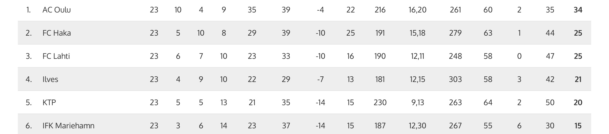 Tilanne nyt. Kaikilla 23 matsia pelattuna