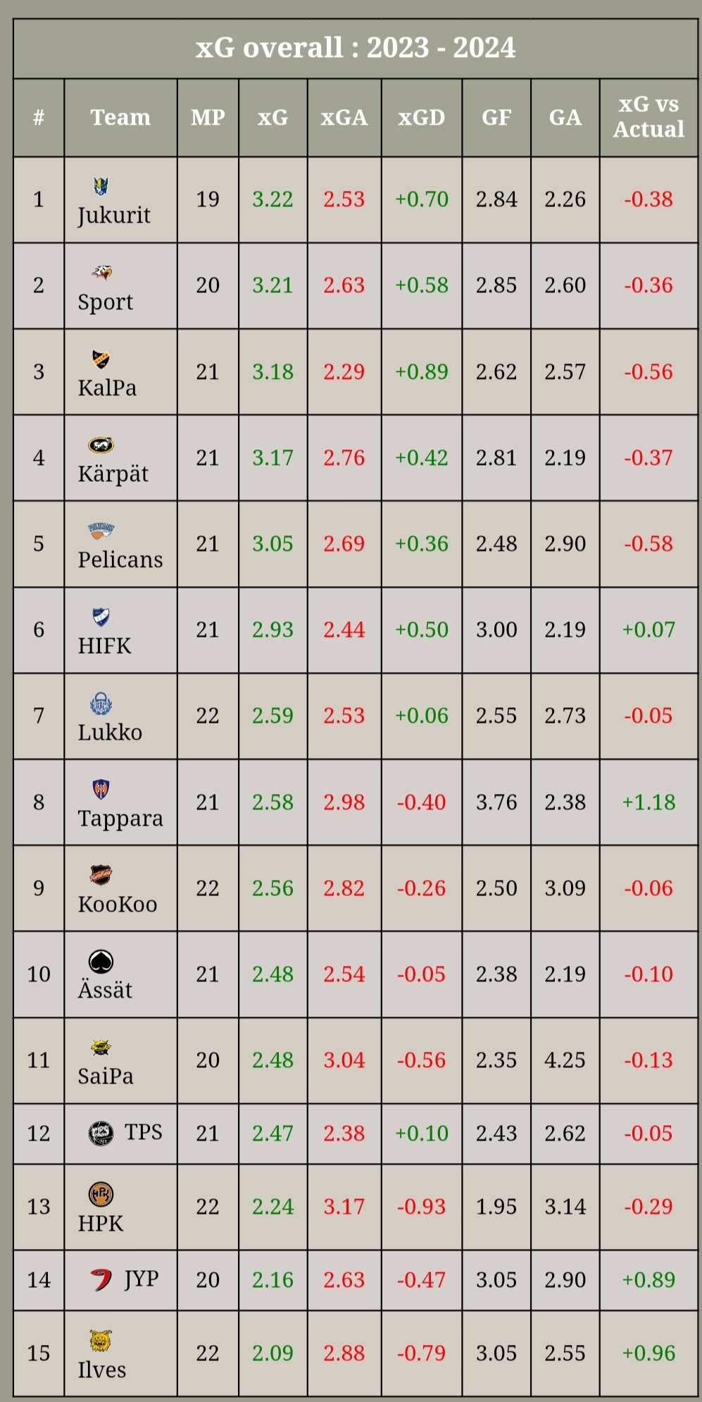 Noilta "tulosyksikön" kavereilta ei ehkä Ikosta lukuun ottamatta ole tullut yhtä hyvin apuja kun aikaisemmin. Esim. Kontiolan av-aika viime kaudella oli 1:00 ja miinukseen meni 8:13. Suomella 0:52 ja 13:10. Kaudesta 21-22 alkaen on ollut täysin poikkeuksellista, että noin paljon alivoimaa pelaaville tulee noin tiiviiseen tahtiin miinuksia. Tähän asti heikoimmat lukemat ovat olleet Kontiolan 6:01 ja Päkkilän 6:03 kaudelta 21-22.