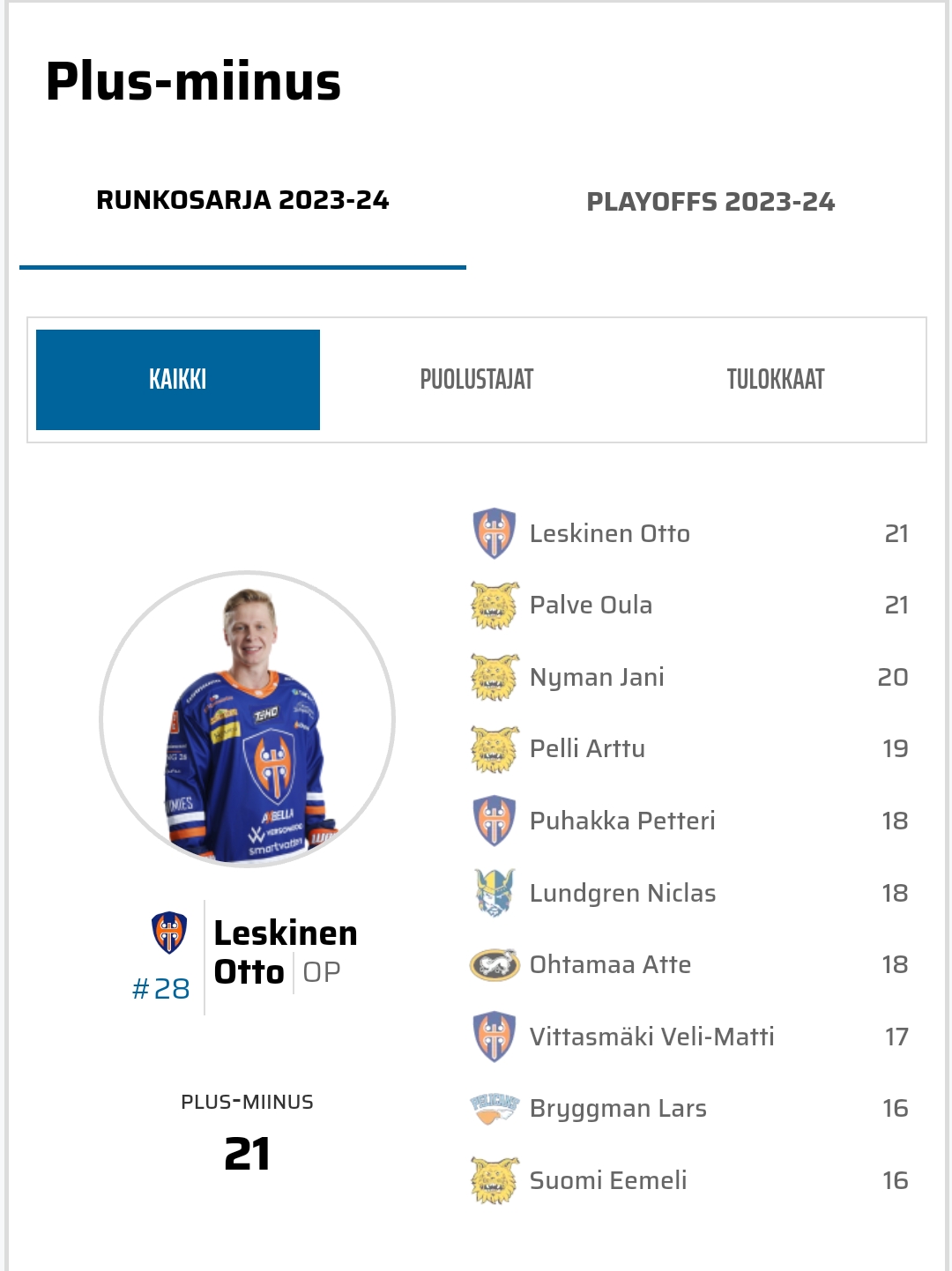 Ilves on selvä "sarjaykkönen" näissäkin, pisteissä sekä pistekeskiarvoissa / ottelu laskettuna.