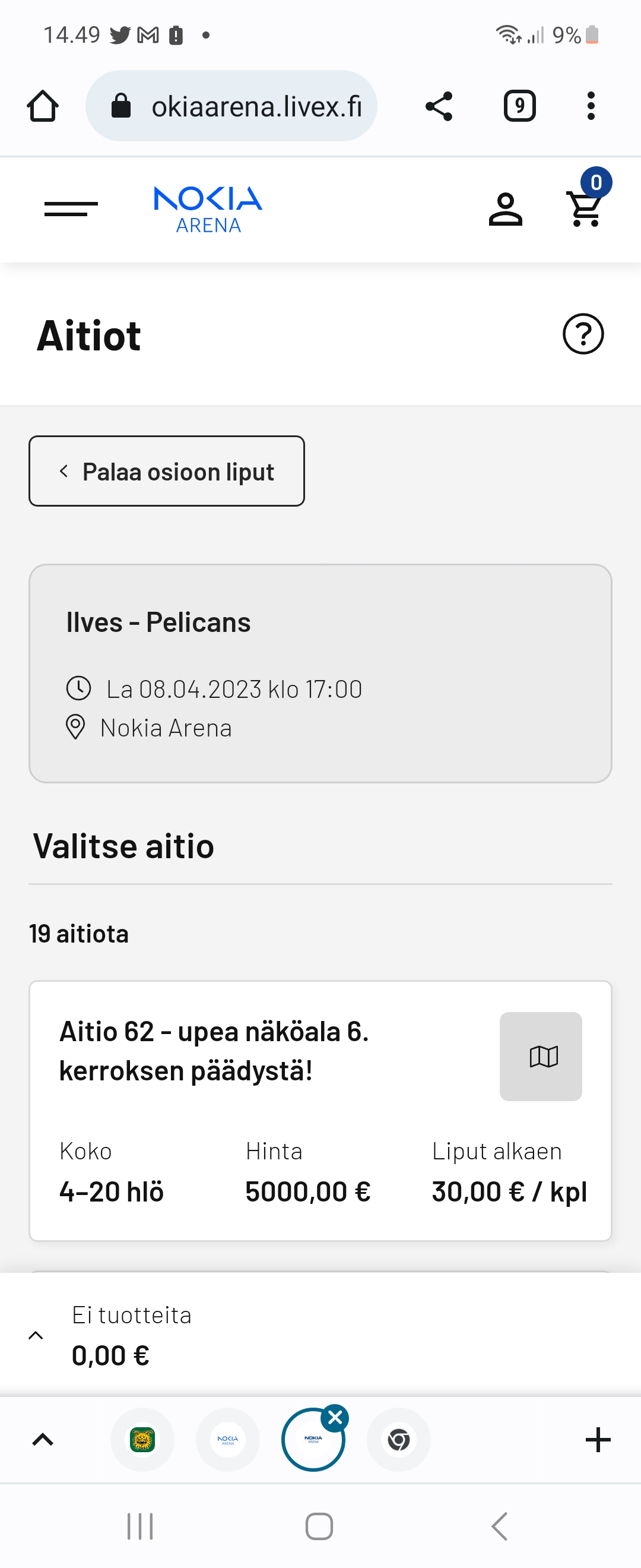 Tiistaipeliin odotusarvo on 10-11K, (eikä suinkaan täysi halli).
