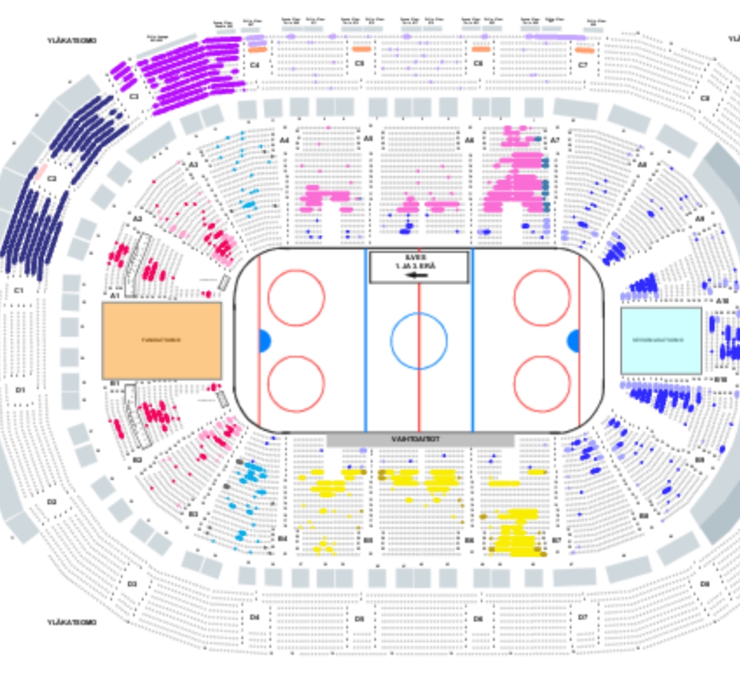 Mitä kuikuillut, niin seisomakatsomon alaosasta jos nappaisi alimmalta riviltä sen tuplapenkin ja kakarat sais sitten halutessaan seisoskella siinä päädyssä ja siinä varmasti saa kokea ryskettä ja kiekon pauketta.